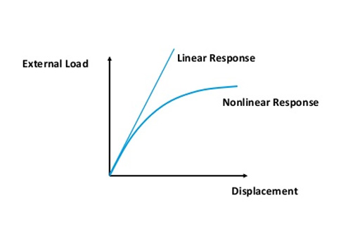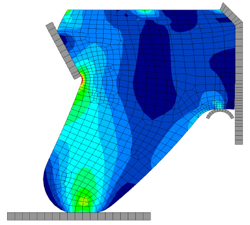 Designs may be made of plastic materials, they may allow large deformations, they may rely on membrane effects for stiffness, or they may be made up of contacting parts. In such cases, linear analysis still gives a tractable approximation. However, non-linear analysis may yield a much more accurate result. This added accuracy enables our clients to improve their designs. It is important to note that linear and non-linear analysis must yield the same result for a linear problem; our engineers are able to distinguish the necessity for non-linear analysis from cases where linear analysis will suffice.